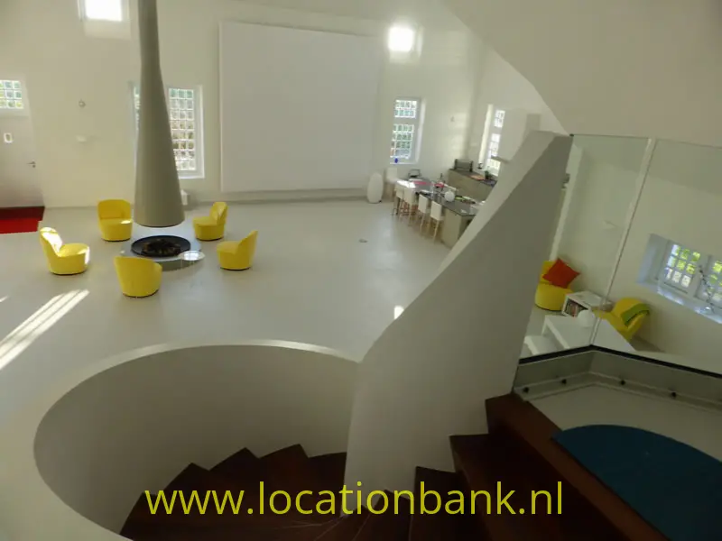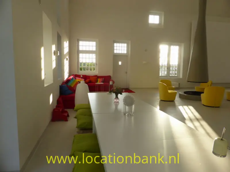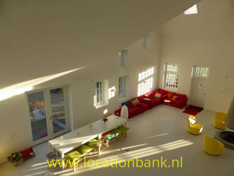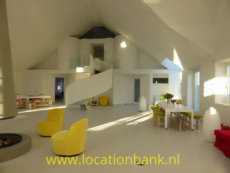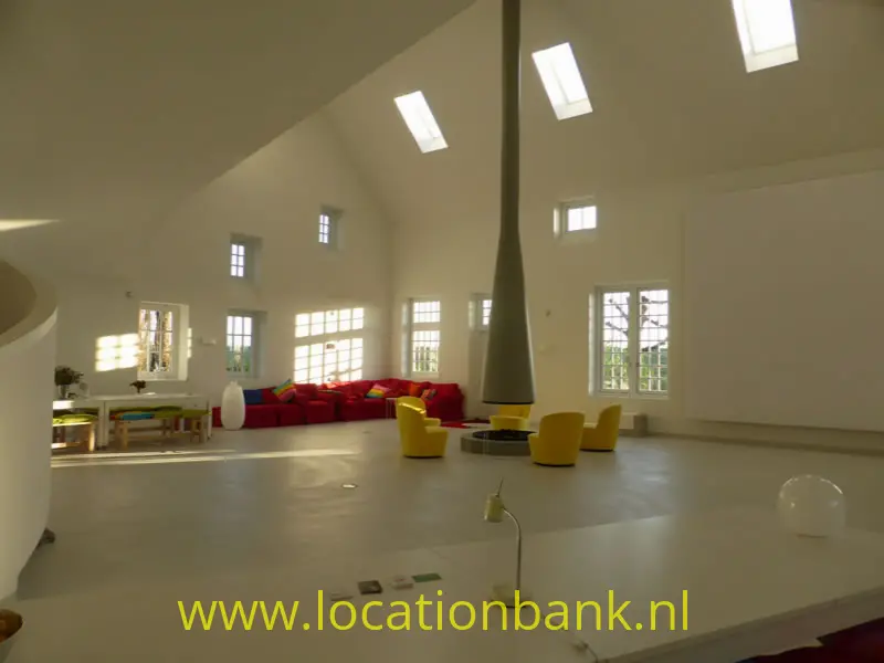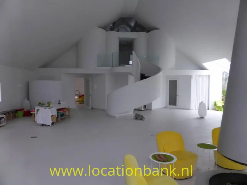 Trefwoorden: Villa modern binnenhuis architectuur ruim hoog open kleurrijk wit topshot bijzonder unieke uniek zonder muren studio loft brabant futuristisch huis woning wit witte ruimte groot witte loft